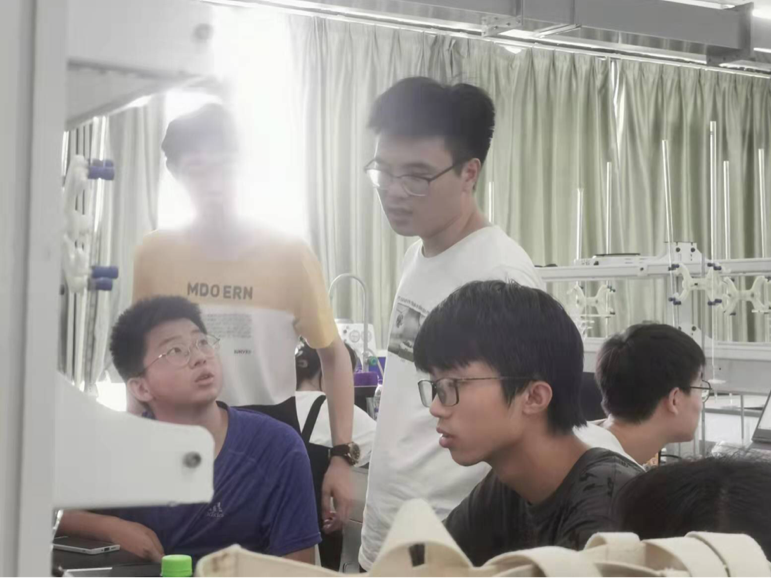 竞赛中,同学们起早贪黑,活动路线基本只有寝室—食堂—实验室,三点一线。时间紧,任务重,为了做出更好的成果,同学们充分利用在实验室的点滴时间,互相探讨、摸索,咨询老师,找出最佳的实验方案。而且为了实验仪器的正常运转与不出差错,还进行了轮流守夜值班。同时,带队老师尽职尽责,对于学生询问的问题耐心讲解,直到学生理解、弄懂为止。