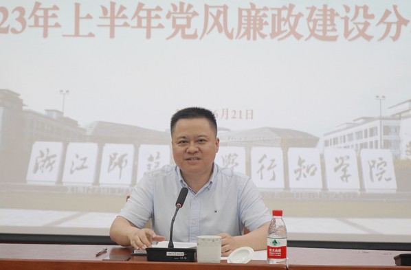 6月21日下午,学院2023年上半年党风廉政建设分析研判会议在图书馆报告厅召开。学院党委书记刘星喜,纪委书记宣仲义,副院长黄凯声、郑荣泉、蒋永华,学院纪委委员,二级教学单位和各部门主要负责人参加会议。会议由刘星喜主持。