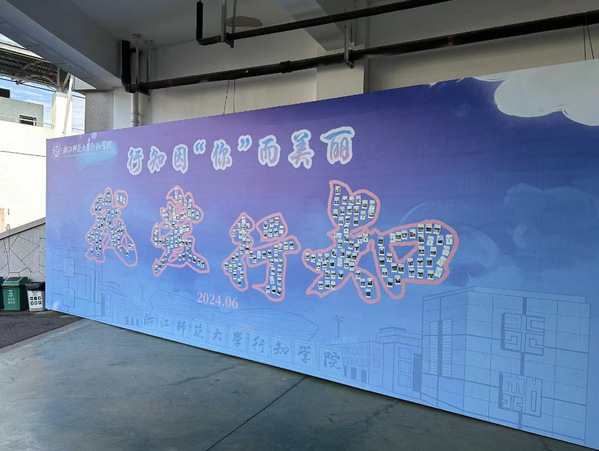 本次活动以行知校园为活动场所,教职工需在图文信息中心、体育馆、体育场三个打卡点,通过现场的拍立得相机,完成与美丽校园的合影并集齐三个印章,最后将相片粘贴在终点展示板上,共同绘就“我爱行知”。