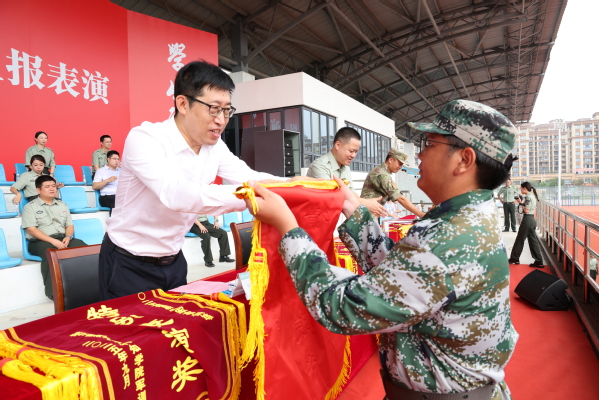 刘星喜在讲话中充分肯定了2025级新生的军训成果。他指出,14天军训淬火是一次深刻的国防教育,也是一次严峻的意志考验,更是一次宝贵的人生历练。刘星喜向全体参训同学提出三点要求:要锤炼攻坚克难的“锐气”,勇做勇毅前行的追梦者;要积蓄勤学砺能的“底气”,善做知行合一的实干者;要涵养家国同心的“正气”,勤做奋斗进取的奋斗者。