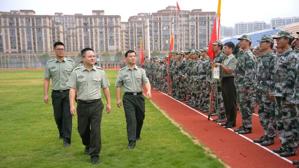 刘星喜在军训有关负责人陪同下,对参训营队进行检阅。学子们目光坚定、身姿挺拔,亲切的问候与铿锵有力的应答声响彻全场,传递出青春的豪情与斗志。