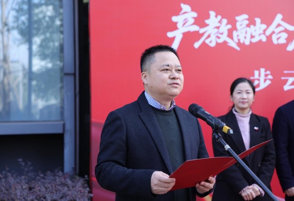 刘星喜在致辞中代表学院向与会嘉宾表示欢迎,对永康市工商联及步阳集团长期以来的支持表示感谢。他回顾了学院坚持“行以求知,学以致用”、深化产教融合的发展历程,特别强调了与步阳集团跨越二十载的合作,包括创办“步阳班”、设立“徐步云奖教奖学基金”等重要成果。刘星喜指出,步云楼冠名既是对长期合作的升华,也象征着校企协同育人的新起点。他向师生提出三点希望:要铸魂立心,在奋斗中追逐青云之志;要精技立身,在求索中积蓄腾飞能量;要创新立行,在突破中开创时代前沿,并祝愿步阳集团基业长青、校企合作再创辉煌。
