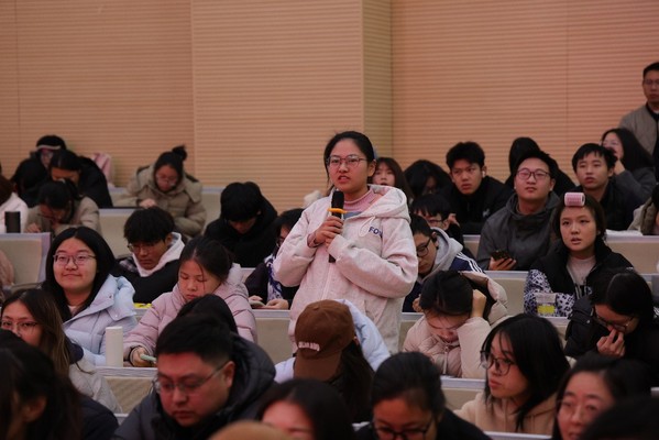 随后,活动进入第二阶段。在步云楼报告厅,学院举行“云启元功能食品研究院”揭牌仪式,徐步云董事长受聘为研究院名誉院长。徐步云还围绕《与时代同频 与奋斗共舞——步阳集团的创业之路》主题,与在场师生分享创业经验,并进行互动交流。