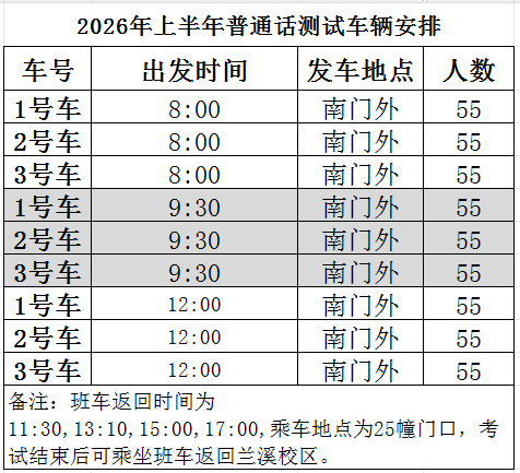 2.请按时到25幢115教室报到考试(见师大本部地图),不接受调整考试日期。考试当天学院将提供专车接送考生往返两校区(见下图),各考生可自愿乘坐。