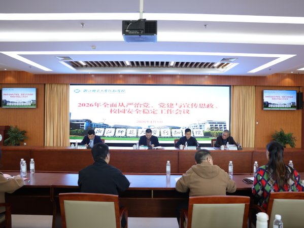 4月1日下午,学院在图书馆学术报告厅召开2026年全面从严治党、党建与宣传思政、校园安全稳定工作会议。学院党委书记刘星喜主持会议并讲话,党委副书记陈建伟、陈天云,纪委书记宣仲义分别作工作部署。