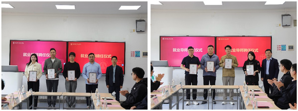 为进一步深化产教协同育人,助力学生实现更高质量更充分就业,学院聘请与会优秀校友担任学生就业导师。陈建伟和陈天云分别为八位校友颁发聘书。受聘校友表示,将积极为学弟学妹的职业规划、实习实践与未来发展保驾护航,为学院人才培养贡献智慧和力量。